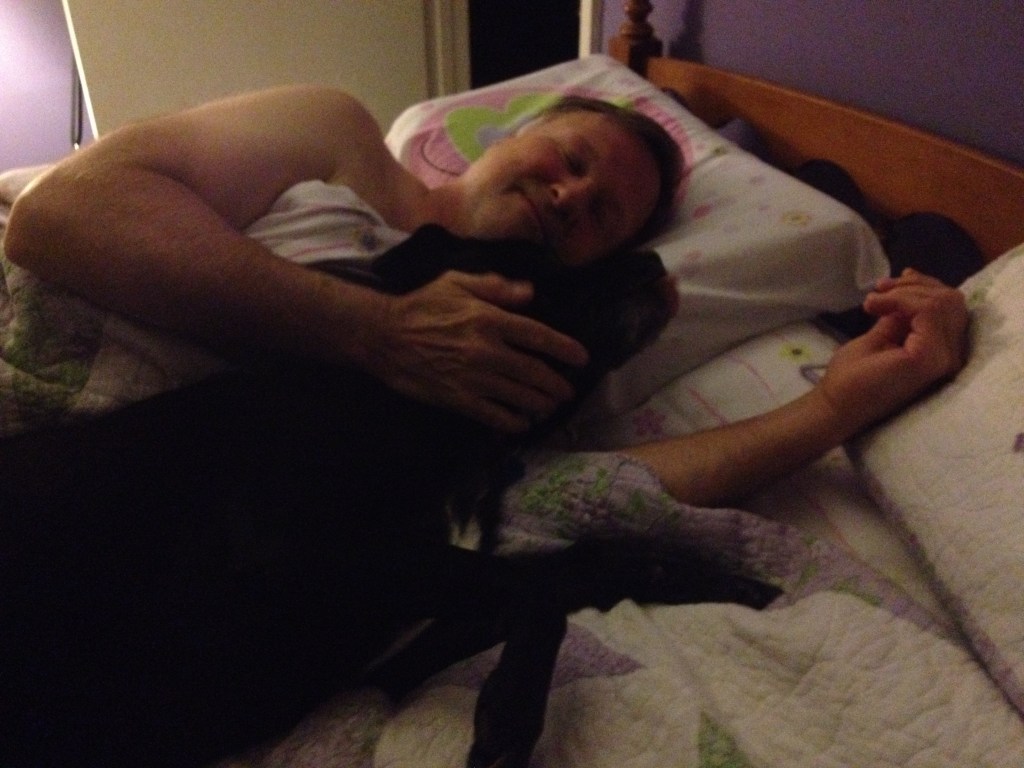 After my heart attack, when I returned to part-time work, our work hours allowed me to come home for lunch and nap during a three hour break; Lex would join me every time.