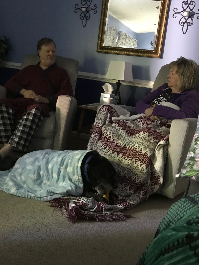 If he could find a good blanket to wrap himself up in . . . he would, especially if it was at his Mommy’s feet! And a good chew toy (that we called “Spikey”) never hurt anyone! “Go find Spikey,” we would say! And off he would go to search.