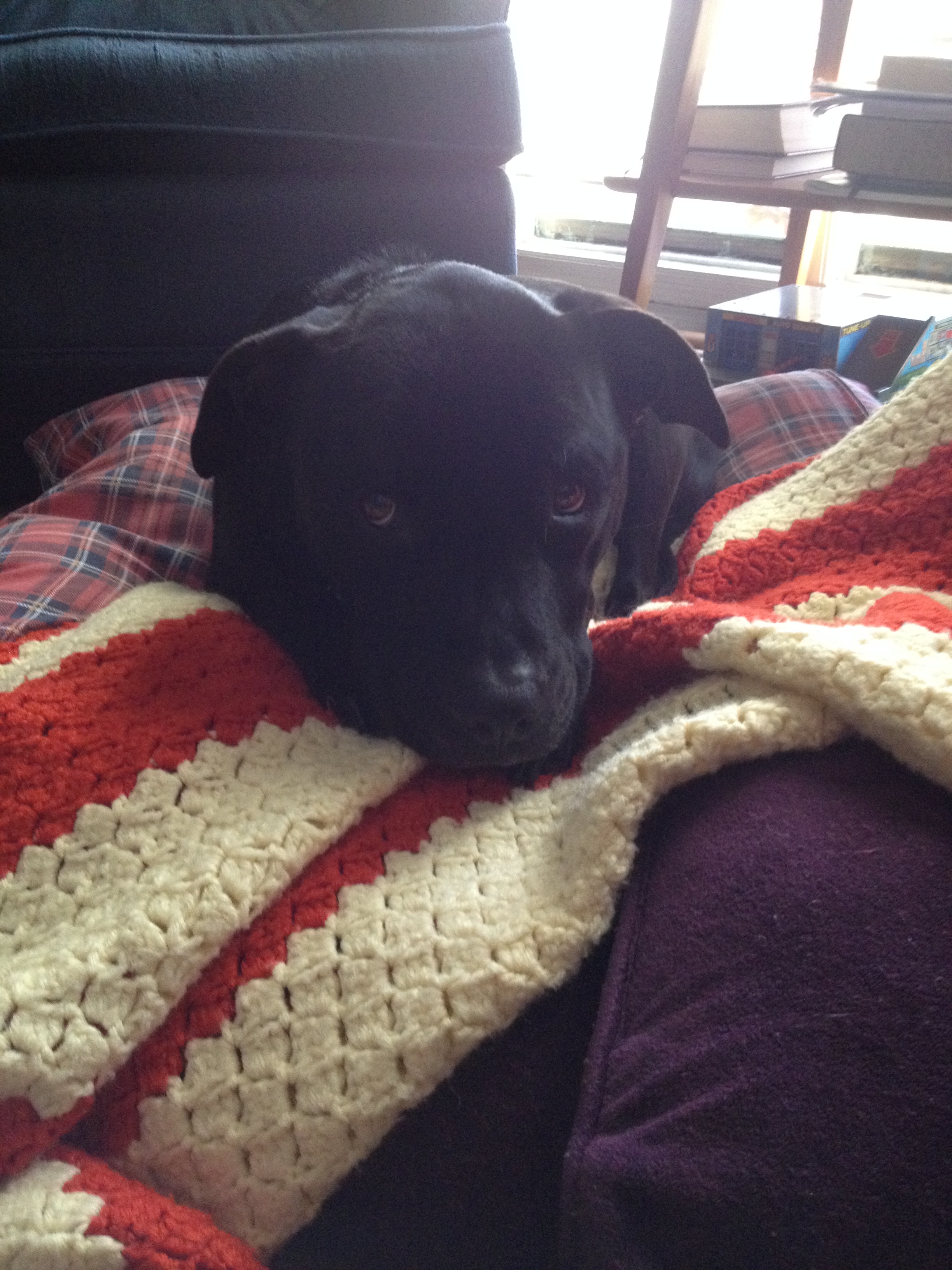 If he could find a good blanket to wrap himself up in . . . he would, especially if it was at his Mommy’s feet! And a good chew toy (that we called “Spikey”) never hurt anyone! “Go find Spikey,” we would say! And off he would go to search.
